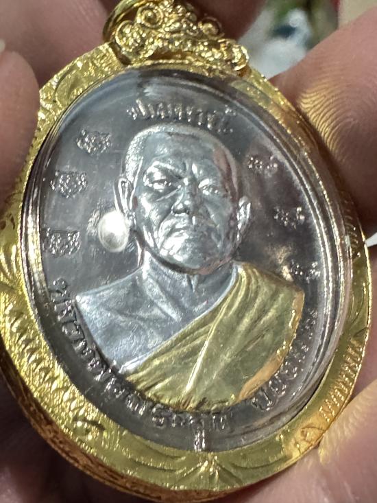 เหรียญหลวงพ่อประสูติ วัดในเตา(วัดถ้ำพระพทธโกษีย์ จ.ตรัง หมายเลข 3 เนื้อชุบแบล็คโรเดียม หน้ากาก 2K หลังเรเซอร์ยันต์ อุดมวลสาร 9 ชนิด เลี่ยมกรอบทอง(ไม่แท้) |
