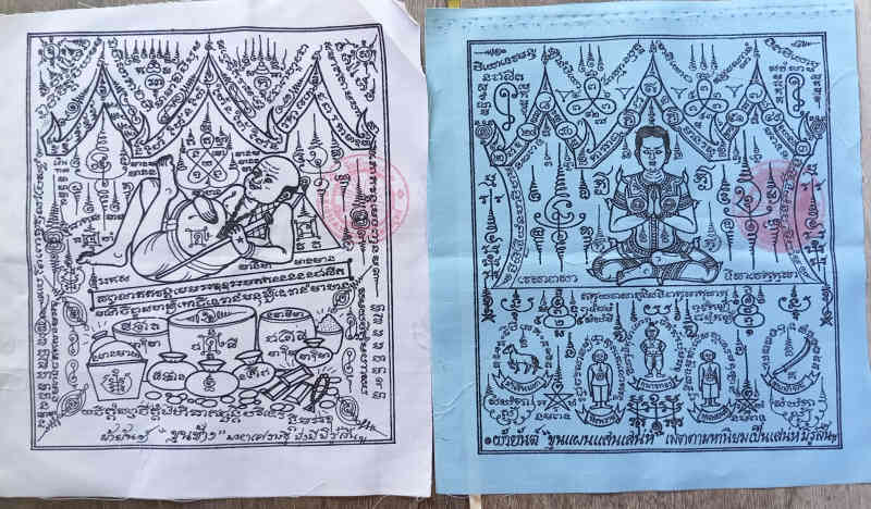 ผ้ายันต์ขุนช้าง(เจ้าทรัพย์)8+ขุนแผน(เมตตาแล้วคลาด)หลวงปู่ขุ้ยศิษย์หลวงพ่อทบสีขาว+ฟ้าชุดสุดท้ายเคาะเดียวแดง |