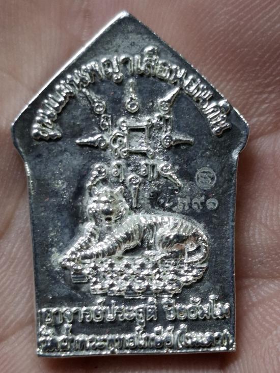 เหรียญหล่อพระขุนแผนหลังพญาเสือนอนกิน พระอาจารย์ประสูติ วัดในเตา จ.ตรัง เนื้อชุบเงินโบราณ พร้อมกล่อง |