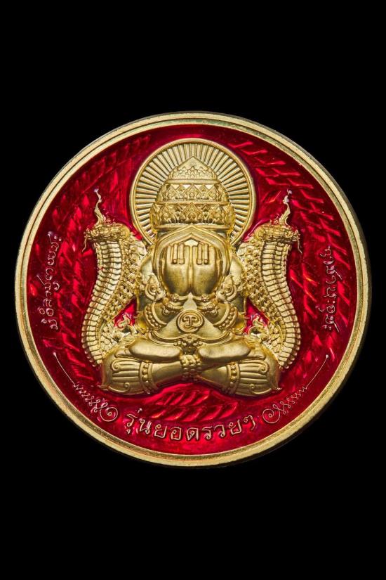 วัดใจ เหรียญรุ่นพังพระกาฬ หลวงปู่ศิลา สิริจันโท วัดสวนธรรมปีติ เนื้อทองทองฝาบาตรลงยาแดง ซีลเดิม