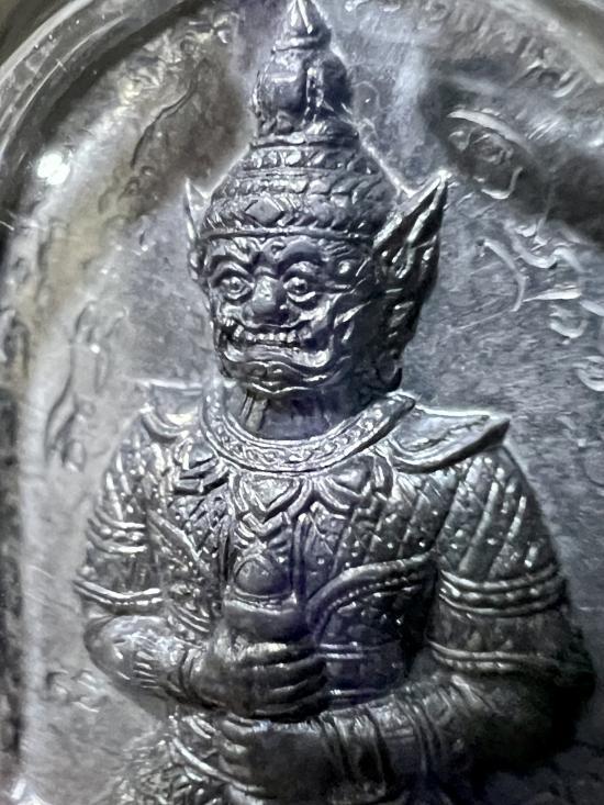 เหรียญท้าวเวสสุวรรณ จำปี 45 เนื้อตะกั่ว พร้อมจารหน้า จารหลัง เลี่ยมกรอบพลาสติกเก็บผิวอย่างดี และกรอบเงินแบบถอดได้ครับ
