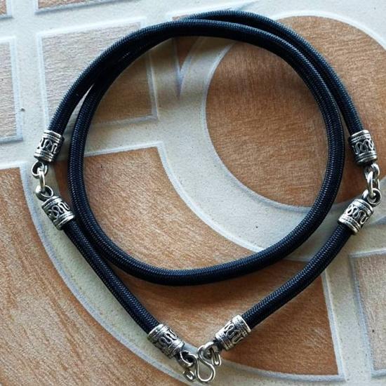 สร้อยคอคล้องพระเชืีอกร่มตอกหมุดหนาแน่น คล้องพระได้ 3 องค์ ขนาดเชือกร่มอย่างหนา 6-7 มิล ตะขอแข็งแรงทนทาน ( ของใหม่ ) |