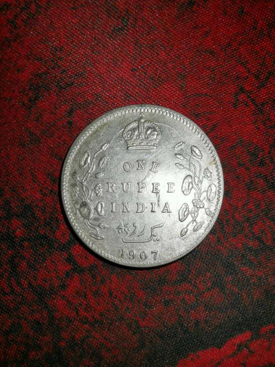 เหรียญเนื้อเงิน 1 รูปี อินเดีย ค.ศ.1907 ตามมรูป เคาะเดียว