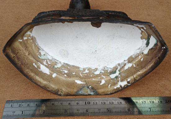 พระบูชา ปางมารวิชัย เนื้อโลหะ ฐานกว้าง 7 นิ้ว สูง 10 นิ้ว ใต้ฐานมีรอยตราปั้มวัด แต่ซีดจาง ตามรูป