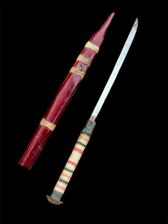 มีดสาริกา(มีดตะปูโลงผี)ด้ามลายธงชาติ หลวงพ่อทบ วัดชนแดน ปลอกมุด ตัวมีดทำจากตะปูตอกโลง