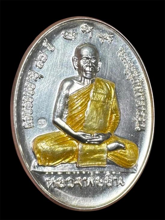 เหรียญหลังเต่า เต็มองค์ ปี2558 เนื้อเงิน ลงยาจีวรเหลือง สร้าง 288 องค์ หมายเลข 222 พระสวยมากๆส่งพร้อมกล่อง
