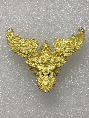 พญาครุฑมังรายศาสตร์ เศรษฐีอนันตทรัพย์ พระอาจารย์วิรุต วัดสันมะเหม้า จ.เชียงราย เนื้อสัมฤทธิ์ชุบทองขัดเงาบางส่วน พิมพ์เล็ก สูง 3 ซ.ม. กล่องเดิม |