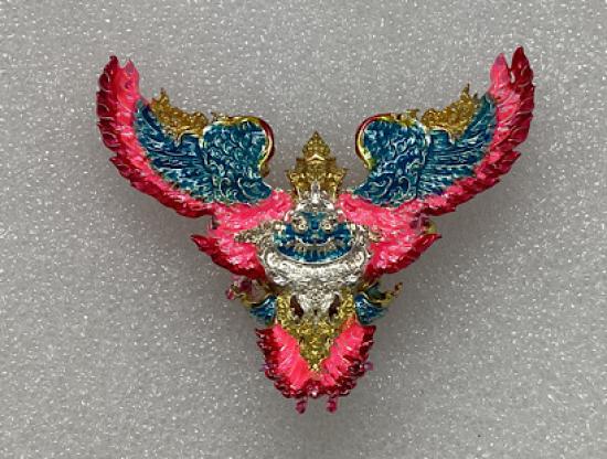 พญาครุฑมังรายศาสตร์ เศรษฐีอนันตทรัพย์ พระอาจารย์วิรุต วัดสันมะเหม้า จ.เชียงราย เนื้อชนวนทองขาว ลงยาองค์ชมพู สูง 4 ซ.ม. พิมพ์ใหญ่ กล่องเดิม |