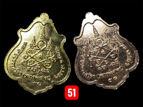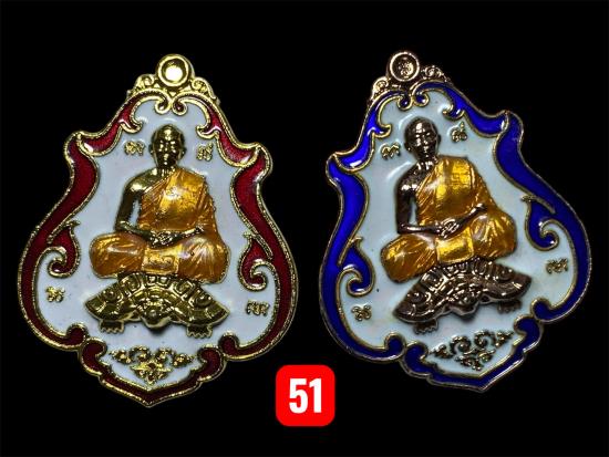 แยกชุดกรรมรับพระ 2 องค์ เหรียญโภคทรัพย์ ลพ สาคร ปี 2552 เนื้อกะไหล่ทอง ลงยาแดง+กะไหล่นาค ลงยาน้ำเงิน หายากมากเพราะสร้างไว้ในเฉพาะในชุดกรรมการที่มีเพียง 300 เท่านั้น เลข 51
