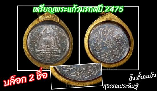 เหรียญพระแก้วมรกต ปี 2475 บล็อคสองชื่อ สุวรรณประดิษฐ์+ฮั้งเตี้ยนเซ้ง *เนื้อเงิน* สุดหายากทั้งบล็อคและเนื้อ + มาพร้อมบัตรรับรอง G-PRA เคาะเดียวแดงครับ