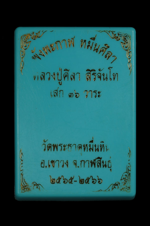 เหรียญ ปิดตาพังพระกาฬ หมื่นศิลา ปลุกเสก36วาระ หลวงปู่มหาศิลา หลวงปู่ศิลา สิริจันโท วัดพระธาตุหมื่นหิน จ.กาฬสินธุ์ เนื้อทองแดง เลข ๖๐๓๗ มีกล่องเดิม