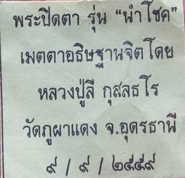 พระปิดตา "นำโชค" ลป.ลี กสลธโร วัดป่าภูผาแดง หลังปั้มนามหลวงปู่ ปี 2559 พร้อมใบฝอยจากวัด