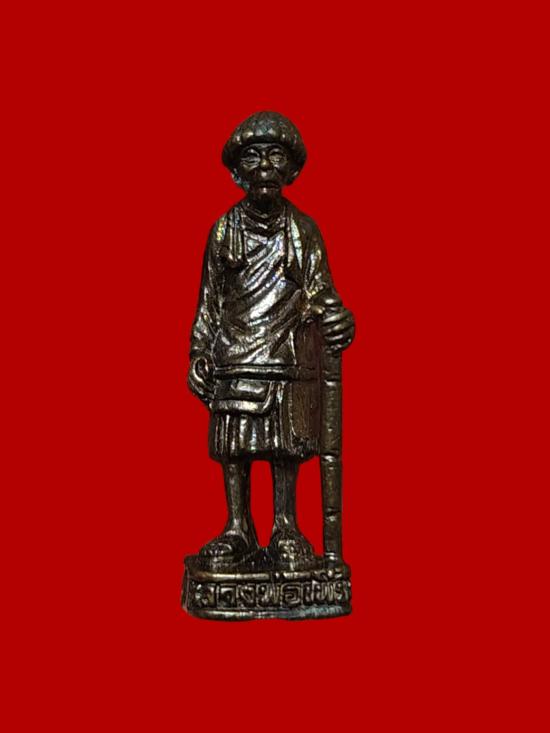 รูปหล่อถือไม้เท้า หลวงพ่อเพี้ยน วัดเกริ่นกฐิน จ.ลพบุรี เนื้อโลหะผสม สภาพสวย