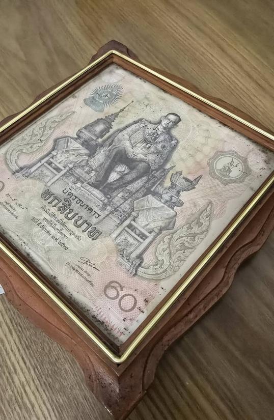 ธนบัตรที่ระลึก 60 บาท ร.9 นั่งบัลลังก์ พร้อมกรอบเก่าๆ เดิมๆ ตั้งโชว์ได้