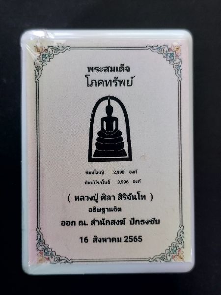 พระสมเด็จโภคทรัพย์ ซึ่งเป็นพระเครื่องที่ได้รับความนิยมอย่างสูงในประเทศไทย โดยมีรายละเอียดดังนี้: