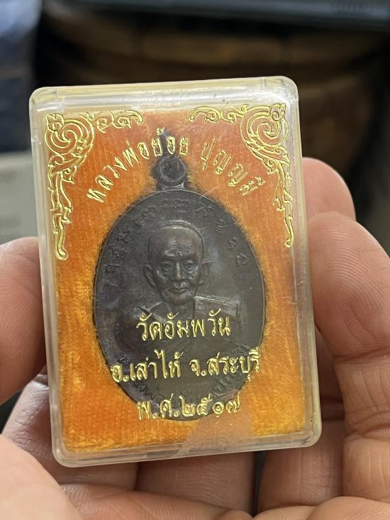 ชื่อพระเครื่อง เหรียญหลวงพ่อย้อยวัดอัมพวัน รุ่นให้ลาภคุ้มภัย พิมพ์ใหญ่ นิยมตอกโค๊ด เนื้อทองแดง ปี2519 จ.สระบุรี