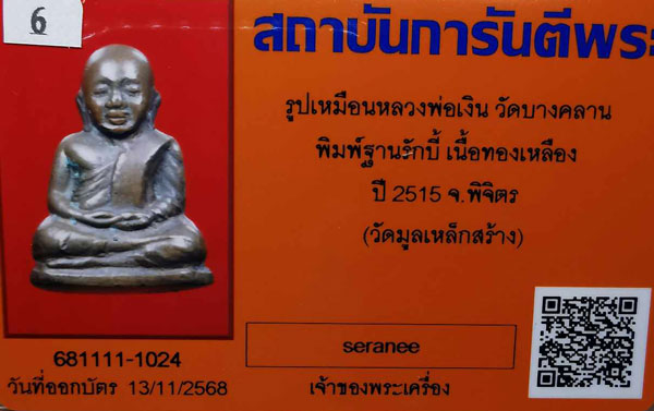 รูปเหมือนหลวงพ่อเงิน วัดบางคลาน พิมพ์ฐานรักบี้ เนื้อทองเหลือง ปี2515 จ.พิจิตร ตอกโค๊ต กริ่งดัง (วัดมูลเหล็กสร้าง) + บัตร G-pra สภาพเดิมค่ะ สภาพตามรูปทุกประการค่ะ