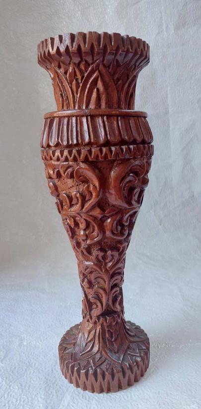แจกันไม้หอมแกะสลัก สภาพดีสวย ขนาดกว้าง 9 ซม. สูง 30 ซม.