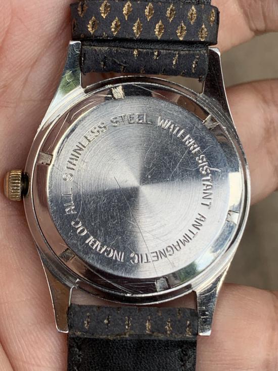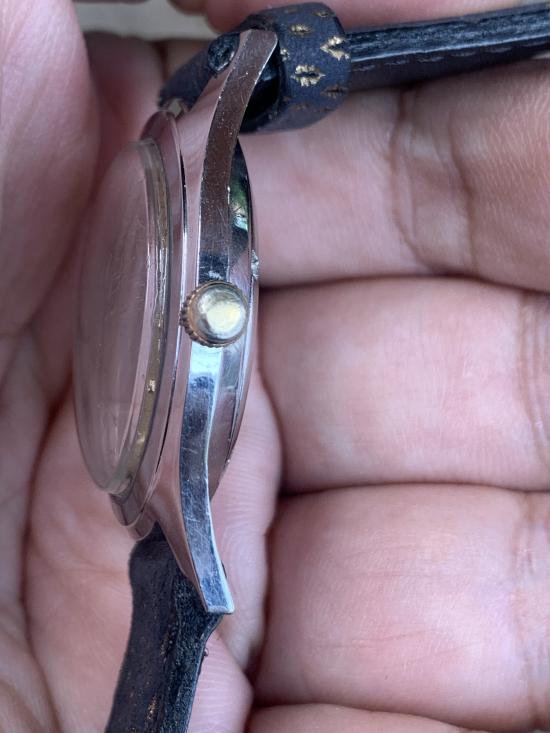 สวยตามรูป สภาพสวยตามกาลเวลา แท้วินเทจยุค1950 เรือนแสตนเลสสตีล หลักธนูเขมดาบ เลขอารบิก หลักเลขออกสีทองชมพู รับประกันต่มกฎ