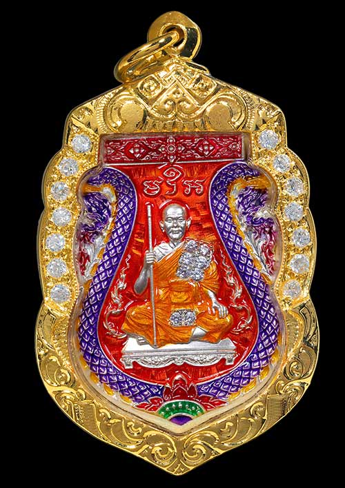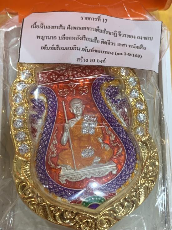เนื้อเงินลงยาส้มฝังพลอยขาวเต็มสังฆาฏิจีวรทองลงขอบพญานาคบล็อคหลังเรียบเสือติดจีวรเกศาหนังเสือเพ้นท์เสือนอนกินสร้างน้อยเพียง 10 องค์เท่านั้นในโลก