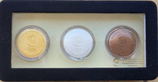 *** วัดใจ*** ชุดเหรียญในหลวงที่ระลึกการแข่งขันซีเกมส์ครั้งที่ 24 ปี 50 จำนวน 3 เหรียญ 3 เนื้อ พร้อมกล่องดิมครบครับ |