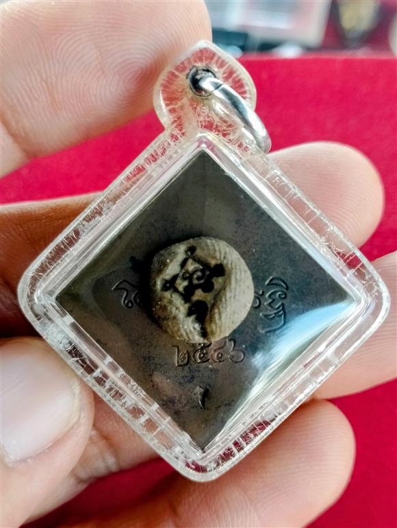 เนื้อผงที่ติดด้านหลังคือผงสมเด็จวัดระฆัง วัดบางขุนพรหม วัดเกศไชโย ผงพระเบญจภาคี และผงมวลสารอีกมากมาย