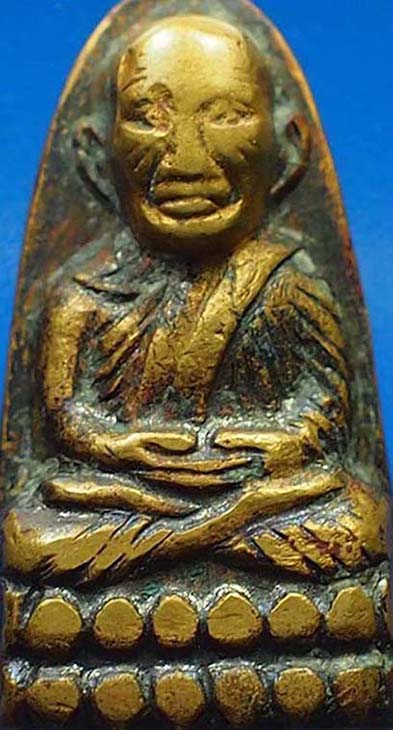 พระหลวงปู่ทวด วัดช้างให้ พิมพ์หลังตัวหนังสือเล็ก (ว จุด) หน้าหนู หูกาง เนื้อทองเหลือง ปี 2505 จ.ปัตตานี พร้อมบัตรรับรองสถาบันการันตีพระ