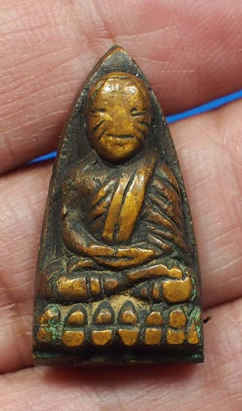 พระหลวงปู่ทวด วัดช้างให้ พิมพ์เตารีดเล็กหน้าอาปาเช่ เนื้อทองเหลือง (แดง) ปี 2505 จ.ปัตตานี พร้อมบัตรรับรองสถาบันการันตีพระ รับประกันตามกฎ G พระ ทุกประการครับ