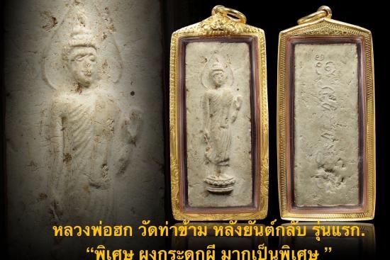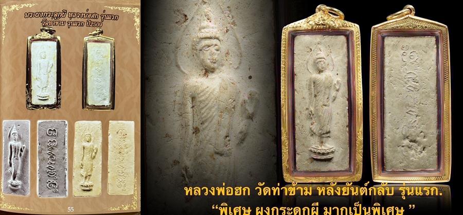 พ่อท่านฮก วัตถุมงคลของท่านมีส่วนผสมของเถ้าถ่านของคนที่ตายวันเสาร์ เผาวันอังคาร พระเกจิอาจารย์นิยมนำมาสร้างเป็นวัตถุมงคลตั้งแต่อดีตจนถึงปัจจุบันที่โดดเด่น ก็มีหลวงพ่อเจิม วัดหอยราก อ.ปากพนัง จ.นครศรีธรรมราช และวัดโพธิ์ และที่นิยมสุดๆ เป็นพระเกจิอาจารย์ดังภาคใต้คือ "หลวงพ่อฮก เนื้อผง รุ่นแรก ปี 2509" สร้างโดย วัดท่าข้าม อ.รัตภูมิ จ.สงขลา สร้างจากผงว่านและกระดูกผี พุทธลักษณะเป็นพระพุทธเจ้ายืนประทานพร ถอดแบบมาจากพระยี่สิบห้าศตวรรษ เนื้อหาสาระที่เป็นเนื้อผงกระดูกผี 108 ป่าช้า ป่าช้าละ 4 ศพ ตายวันเสาร์เผาวันอังคาร ด้วยวิชาอาคมที่แก่กล้าของ "พ่อท่านฮก" ท่านสามารถ "สะกดวิญญาณ" ด้วยพระคาถาอาคม ทำให้วิญญาณที่เชื่อว่า "เฮี้ยน" เป็นวิญญาณที่มีฤทธิ์ในด้านเมตตามหานิยม และสุดยอดของการแคล้วคลาดสามารถแสดงฤทธิ์ในหลายวิธีของการเสริมสร้างบารมีทำให้ดวงวิญญาณเหล่านั้นสามารถสร้างบารมีและโอกาสไป "จุติ" ของในอีกภพภูมิของวิญญาณแต่ละดวงนั้น พระผงกระดูก 108 ป่าช้า หลวงพ่อฮก วัดท่าข้าม เป็นพระปางลีลา (พิมพ์ยี่สิบห้าศตวรรษ) ที่สร้างมาจากผงกระดูกของคนตาย 108 ป่าช้าผสมกับผงต่างๆ ที่หลวงพ่อฮก ท่านรวบรวมไว้ แล้วนำมาสร้างประมาณปี 2509 โดยมีศิษย์ของท่านและชาวบ้านมาช่วยกันตำกระดูกผสมผง แล้วกดพิมพ์พระ ทีละองค์ โดยหลวงพ่อฮกจะเป็นผู้กำกับดูแลทุกขั้นตอน เพราะว่าการจะสร้างพระจากกระดูกคนตายเป็นที่รู้กันอยู่ว่าถ้าวิชาอาคมไม่เก่งกล้าจริงๆ ก็สร้างไม่ได้ โดยพระผงกระดูกจะมีความโดดเด่นในด้านเมตตามหานิยมเป็นอย่างมาก จนอาจนับได้ว่าเป็นพระเมตตามหานิยมอันดับหนึ่งของจังหวัดสงขลาในปัจจุบัน