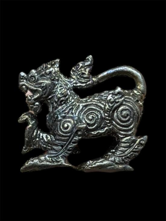 สิงห์ พิมพ์เล็ก เนื้อ กะไหล่ทอง ของหลวงปู่หงษ์ พรหมปัญโญ วัดเพชรบุรี จ. สุรินทร์ ปี 2548 หลวงปู่ท่านปลุกเสกเมื่อ 27 กันยายน 2548 เป็นเครื่องรางที่ทำออกมาได้สวยงามมาก ชื่อของสิงห์ก็บอกแล้วว่าเป็นเจ้าแห่งสัตว์ บูชาแล้วจะดีทางทำมาหากิน และด้านคงกระพันชาตรี ใครที่ต้องการทำมาค้าขึ้นและแคล้วคลาดจากภัยอันตรายไม่ควรพลาดสิงห์นี้ครับ มีใบคาถากำกับจากหลวงปู่ให้ด้วยครับ