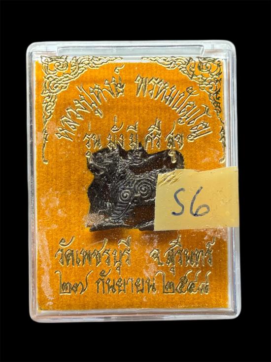 สิงห์ เล็ก เนื้อทองแดงรมดำ รุ่นมั่งมีศรีสุข หลวงปู่หงษ์ วัดเพชรบุรี จ.สุรินทร์ กล่องเดิม ปี 2548 S6 |