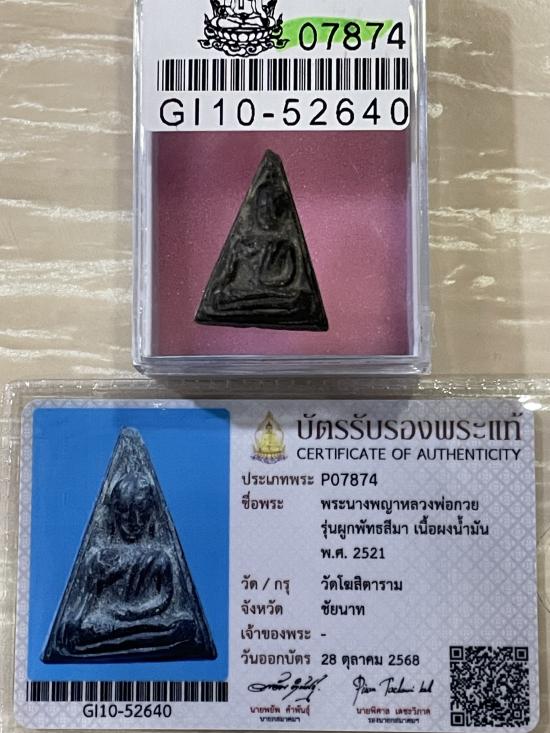 (เคาะแดง1900) +บัตรสมาคม นางพญา หลวงพ่อกวย เนื้อผงน้ำมันดำ