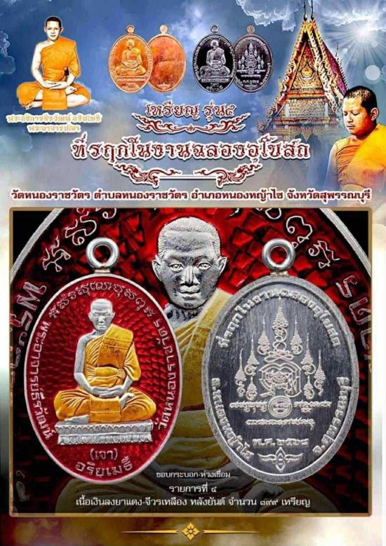 รุ่น4 เหรียญนั่งเต็มองค์ เนื้อเงินลงยาหลังยันต์ ขอบกระบอก ห่วงเชื่อม ที่รฤกฉลองอุโบสถ วัดหนองราชวัตร จ.สุพรรณบุรี