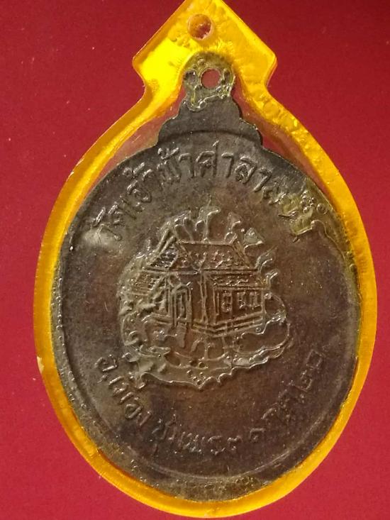 เหรียญรูปไข่ หลังศาลาลอย หลวงพ่อสงฆ์ วัดเจ้าฟ้าศาลาลอย จ.ชุมพร ปี ๒๕๒๐ เนื้อทองแดง พร้อมเลี่ยมกันน้ำเก่า