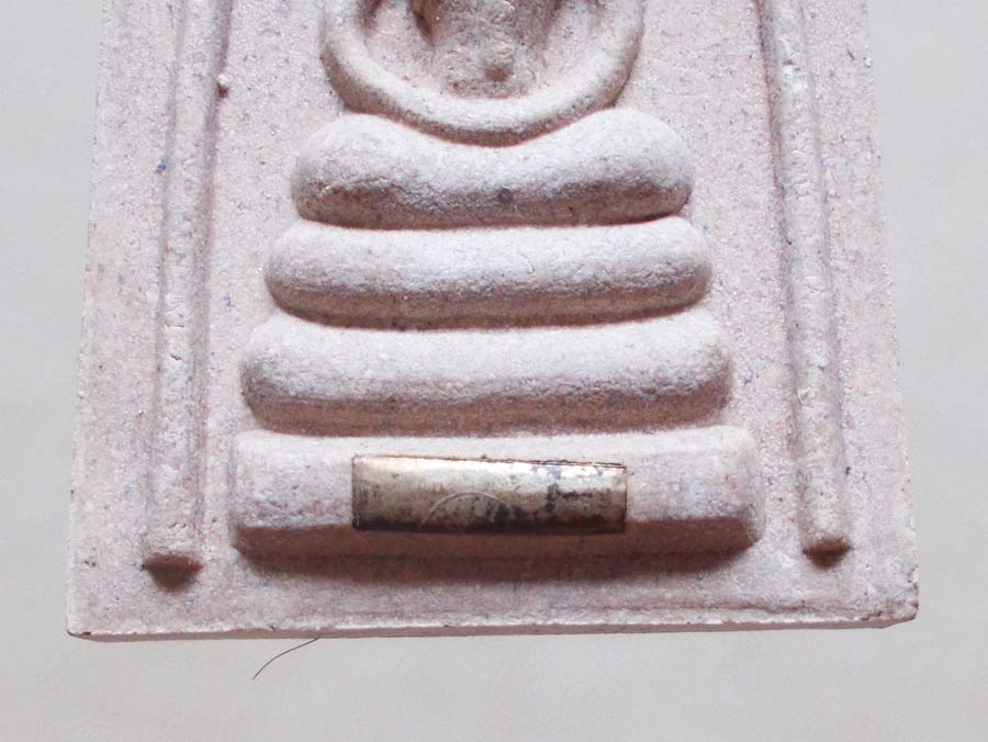 เนื้อผงมวลสาร ฝังตะกรุดเงิน หลังมีเกศา !!