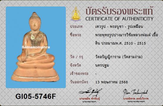พระบูชาปางมารวิชัย หลวงพ่อเต๋ คงทอง เนื้อดินอาถรรพ์(ดินเดียวกับกุมาร) ปี2515 พร้อมบัตรสมาคม**เคาะเดียวแดง**