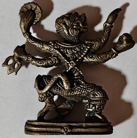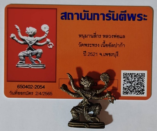 หนุมานหล่อโบราณ 4 กร เนื้ออัลปาก้า หลวงพ่อแล วัดพระทรง จ.เพชรบุรี ปี 2521 |