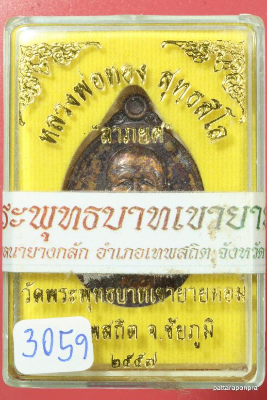 เหรียญหลวงพ่อทอง รุ่นลาภยศ ปี 2558 เนื้อทองแดง มีจาร หมายเลข 3059 |