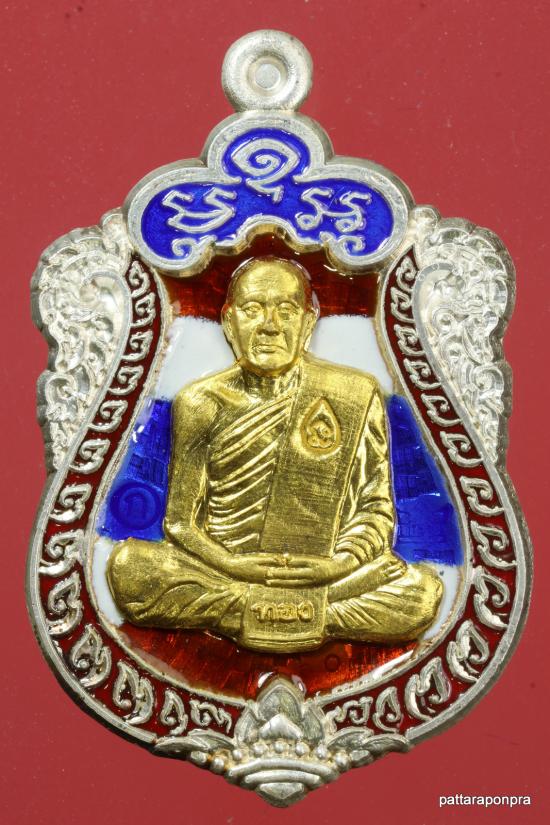 เหรียญเสมาหลวงพ่อทอง รุ่นทองสิบทิศ ปี 2563 เนื้อเงินลงยาสีธงชาติ หน้าทองคำ หมายเลข 60 |
