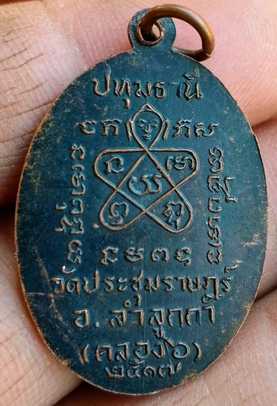 เหรียญหลวงพ่อแดง ธมฺมทินฺโน วัดประชุมราษฎร์ อ.ลำลูกกา จ.ปทุมธานี ปี ๒๕๑๗ เนื้อทองแดงรมดำ