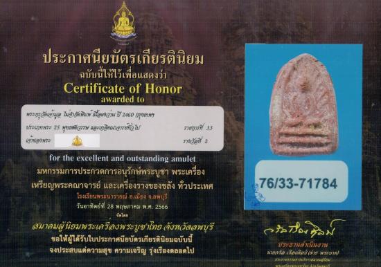 พระกรุวัดเจ้ามูล พิมพ์กลีบบัวรัศมี เนื้อผงชมพู ปี2460 กทม. พร้อม ใบประกาศงานประกวดสมาคม จ.ลพบุรี