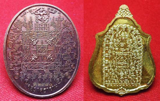 เหรียญหลวงปู่ทวดแสนคาถาล้านอาคม รุ่น อุดมโภคทรัพย์ เนื้อนวะ + เหรียญหลวงปู่ทวด รุ่น ประทานทรัพย์ เนื้อทองแดงกะไหล่ทองลงยา วัดจตุธาตุธาราม จ.ขอนแก่น ปี พ.ศ.2558