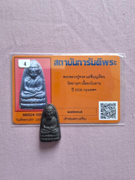 พระหลวงปู่ทวด แม่ชีบุญเรือน วัดอาวุธฯ เนื้อผงใบลาน ปี 2506