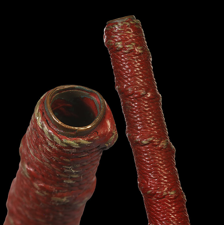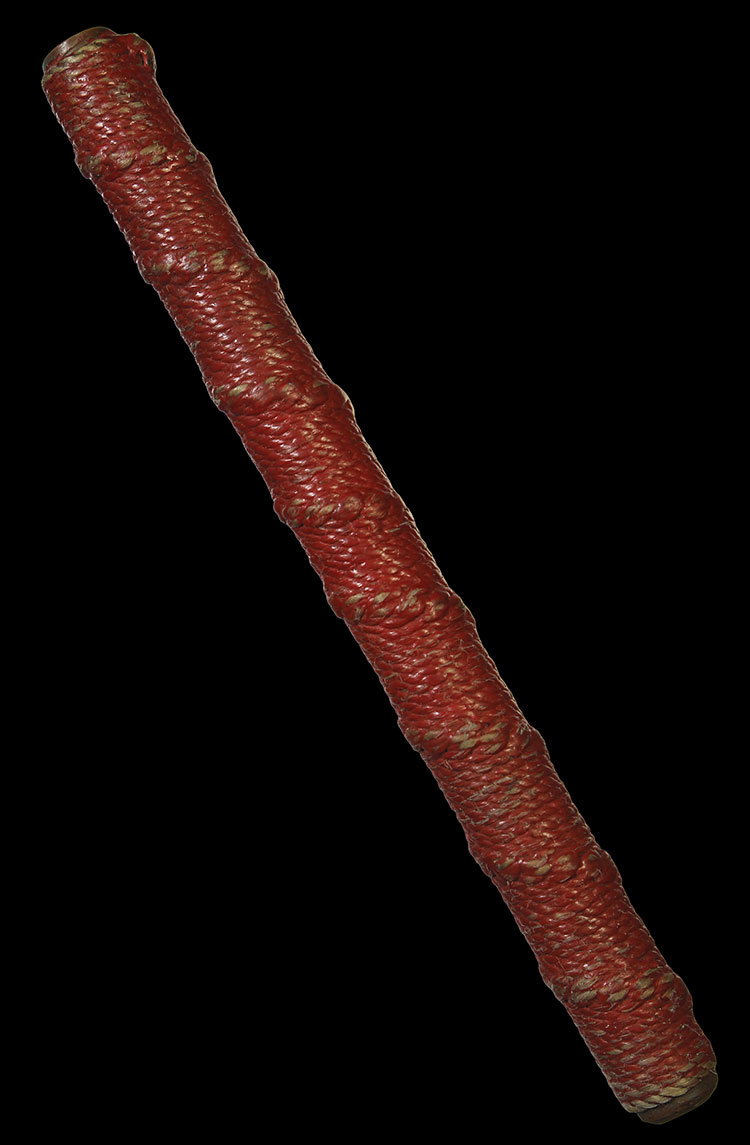 วัดใจ**เครื่องราง ตะกรุดเนื้อทองแดงถักเชือก ลงชาดแดงเก่า ยาว 4.5นิ้ว ไม่ทราบที่....ตามสภาพครับ |