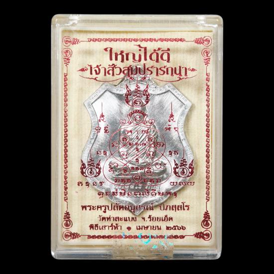 เหรียญพรหมบันดาลทรัพย์ พระอาจารย์ต้อม วัดท่าสะแบง ร้อยเอ็ด รุ่นเจ้าสัวสมปรารถนา ใหญ่ได้ดี เนื้อปีกเครื่องบิน หมายเลข ๒๓๘๔ พร้อมกล่องเดิม |