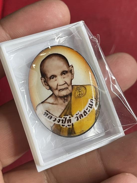 หลวงปู่ดู่ วัดสะแก ฉากสีไข่ไก่ ซีเปีย พิมพ์รูปไข่ หลังยันต์ เนื้อตะกั่ว ปี 53 |
