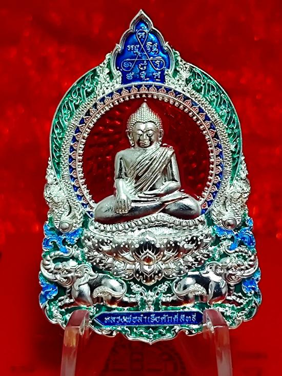 ((เนื้อเงินแท้)) หลวงพ่อสำเร็จศักดิ์สิทธิ์ รุ่นเฮงเหนือดวง เนื้อ Super Silver ลงยาพิเศษ เลขสวย No.2 เลขรองแม่ทัพ