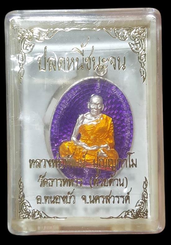 เหรียญหลวงพ่อพัฒน์ รุ่นปลดหนี้ ชนะจน ปี 2563 เนื้อเงินลงยาม่วง เหลือง