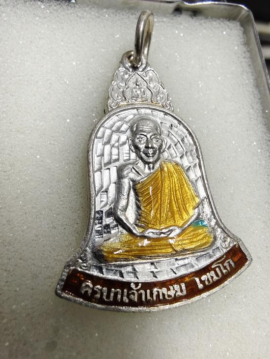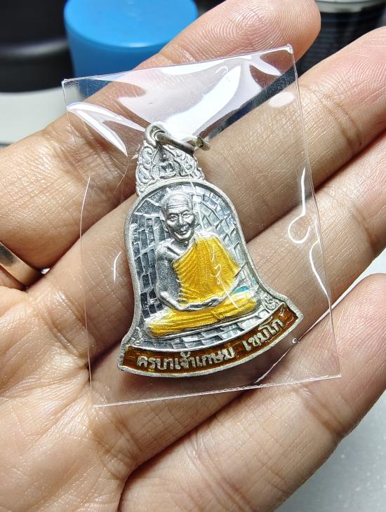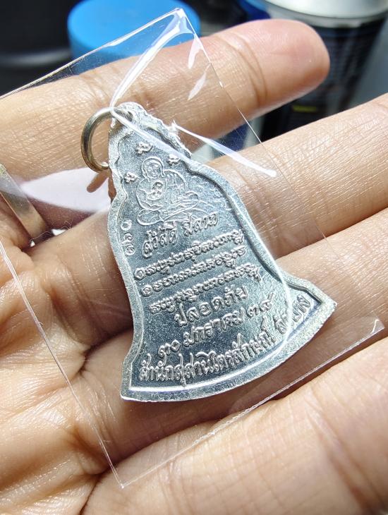เหรียญระฆังสวัสดีมีลาภปลอดภัย ปี 38 เลข760 หลวงพ่อเกษมเขมโก เนื้อเงินลงยาฟ้า ตำหนิยาฟ้าหลุด เนื้อเงินใสผิวกระจก จมูกโด่งปรี๊ด พระสะสมผมเองครับ ประกันพระแท้ตามกฎครับ