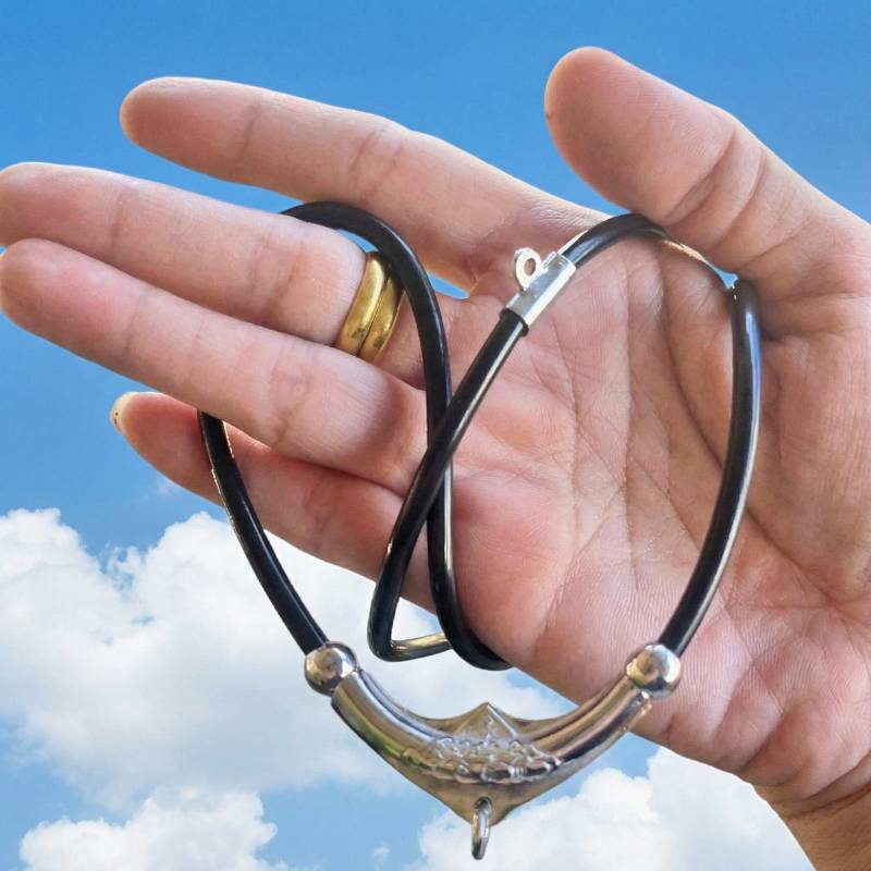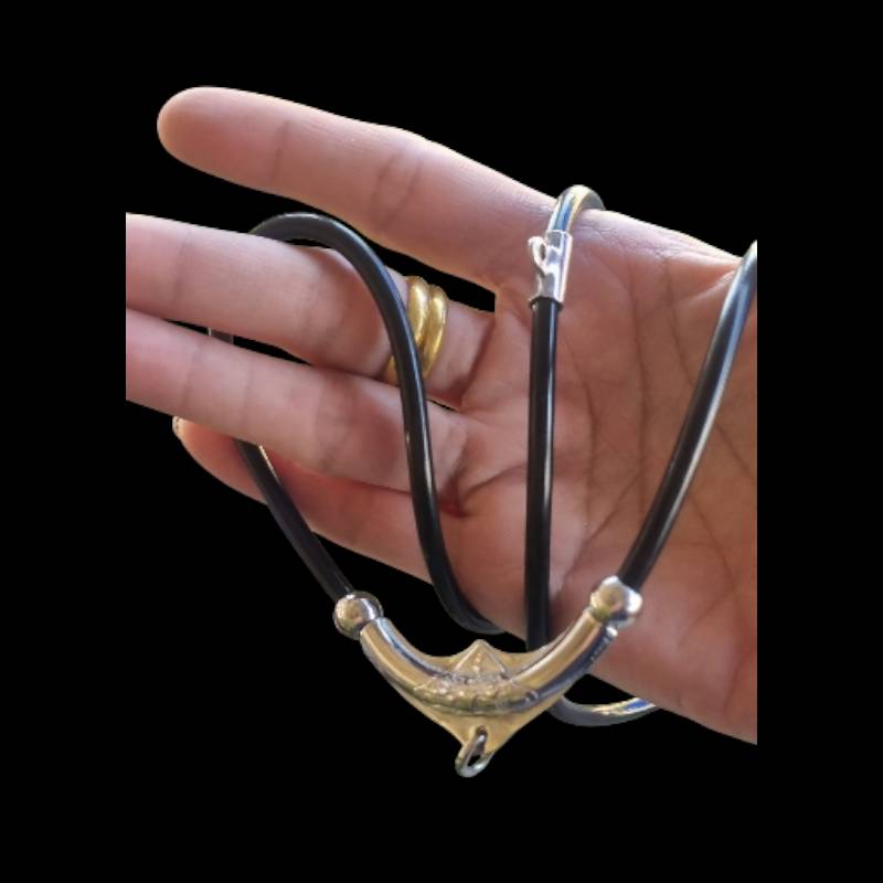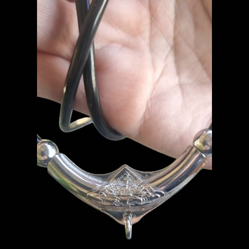 สร้อยคอคล้องพระสายโอริงปล้องเลสกลาง Boomerang ยิงลาย แบบคล้องพระ 2 องค์ หน้าหลัง สายลื่นยืดหยุ่นไม่อมน้ำไม่เป็นสนิม ความยาว 26 นิ้ว (ของใหม่)